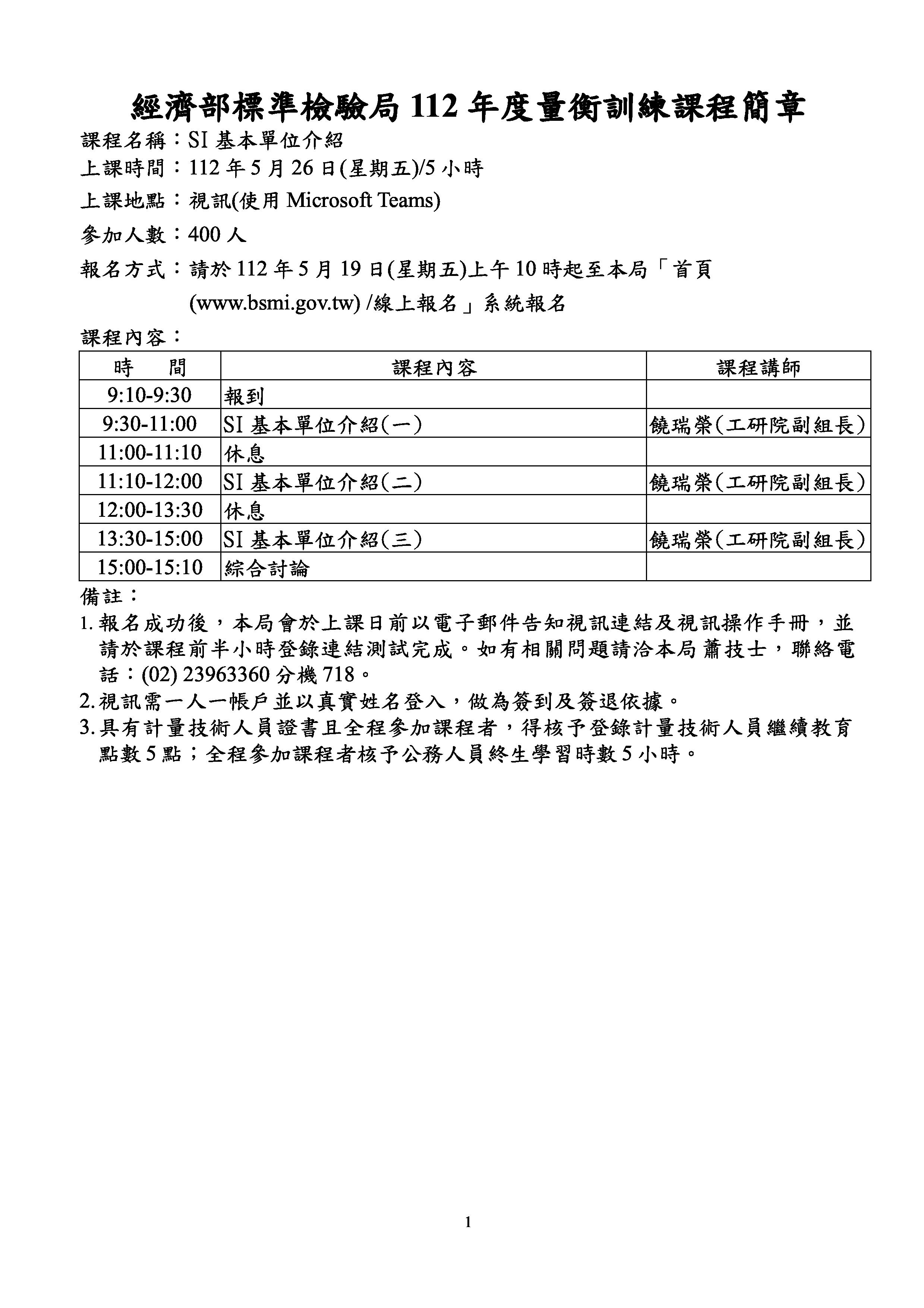 經濟部標準檢驗局 112 年度量衡訓練課程 「SI 基本單位介紹」