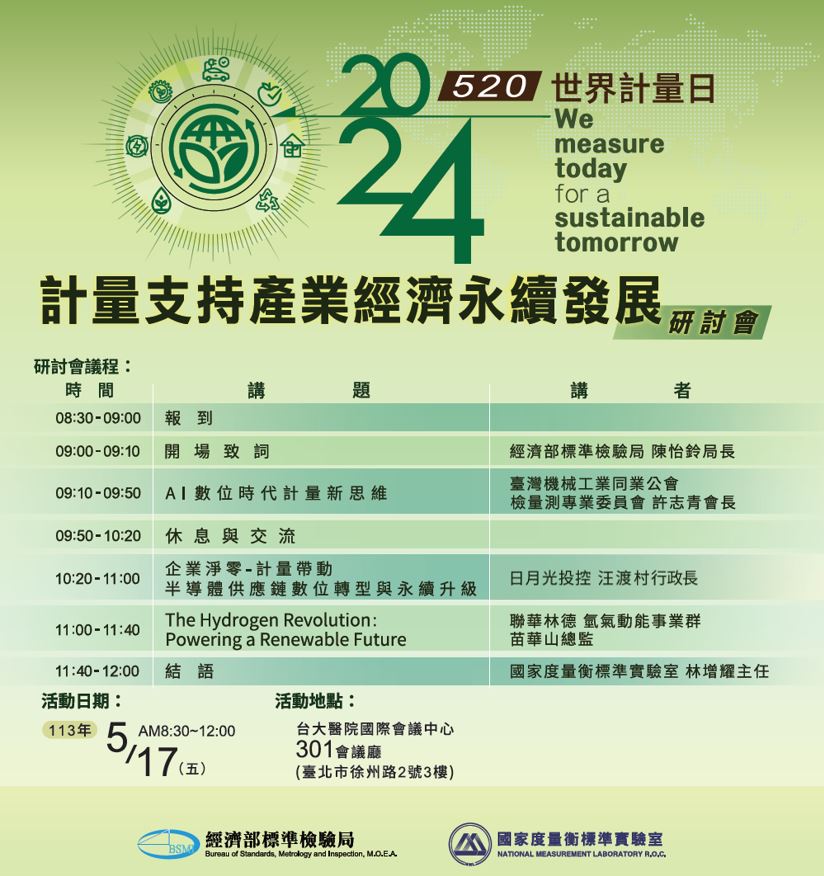 2024年世界計量日主題為「計量支持產業經濟永續發展研討會」