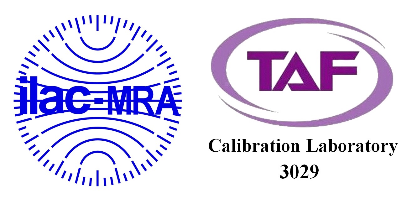 圖右:經TAF評鑑認可之校正實驗室認證標誌(TAF標章及認證編號)
